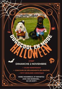 On savait que vous faisiez partie des courageux ! Alors on vous donne rendez-vous le dimanche 2 novembre sur le terrain aux horaires habituels ! Concours de déguisement (en binôme avec votre toutou), petit déjeuner, et possibilité de rentrer à la maison les poches remplies de bonbons !